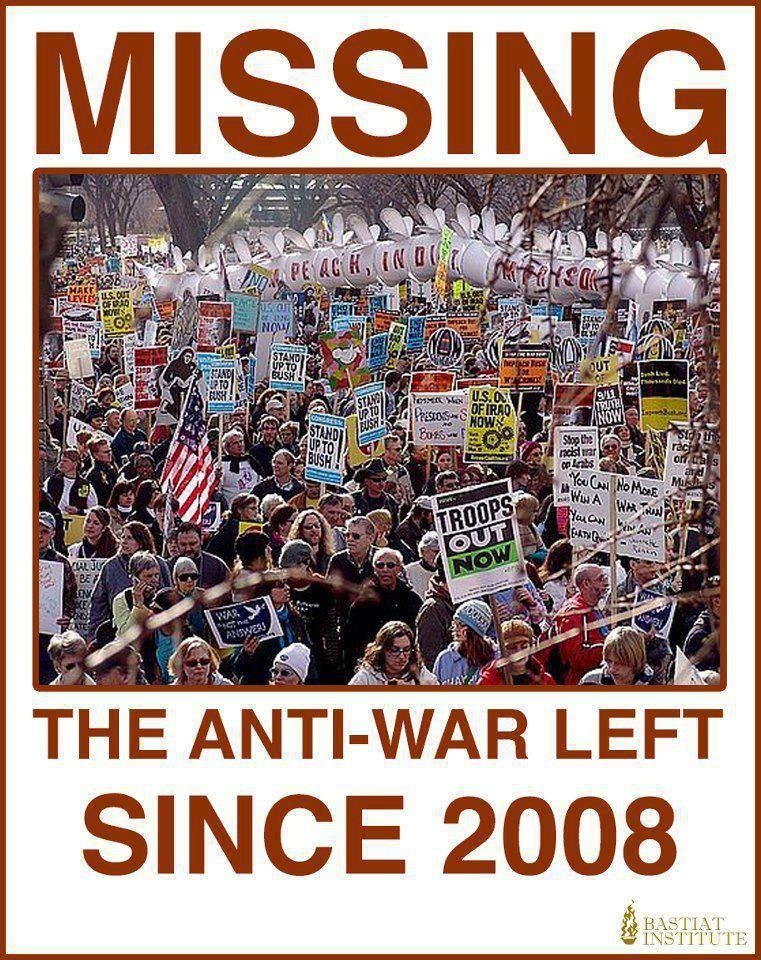 Sad but true. The end of the Bush era has largely meant the end of mass protest against war. We did exit Iraq (although the agreement to do so predates the Obama presidency). The field commanders in Afghanistan have figured out ways to keep casualties to a minimum, which in turn keeps the war off the front page. Our drone strikes have killed thousands and are probably themselves a violation of international law.