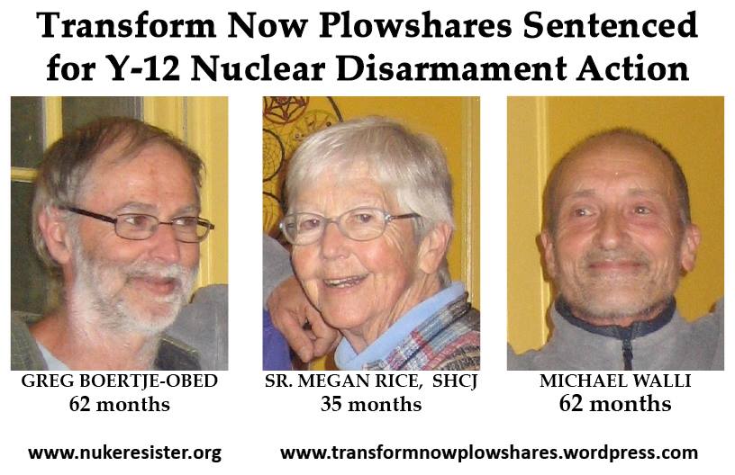 The Transform Now Plowshares and the sentences they received. from Nuclear Resister.