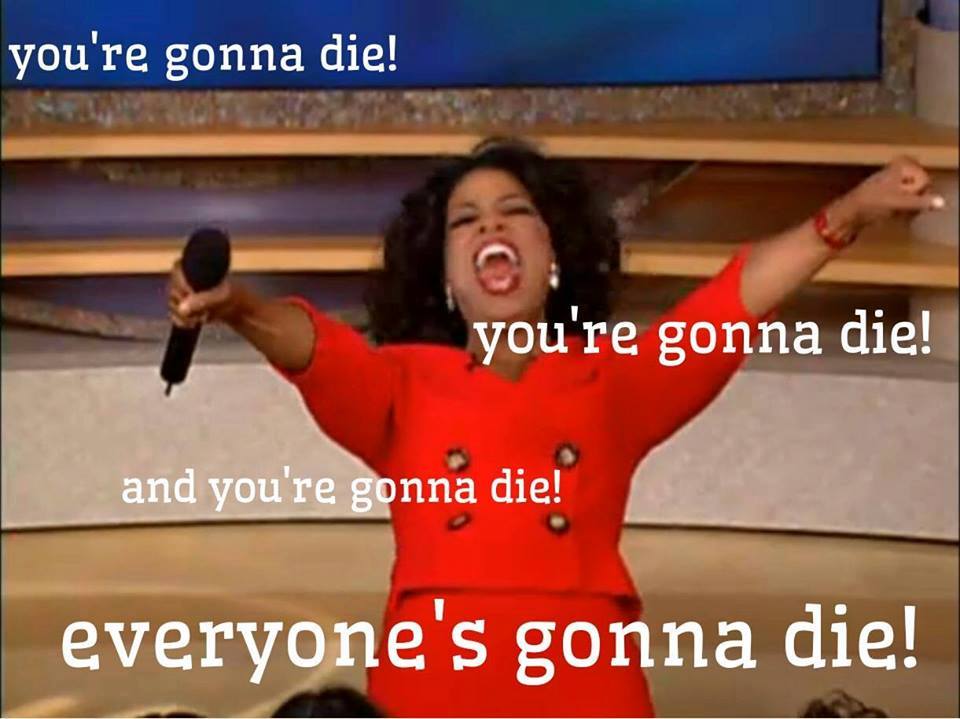 As a certain esteemed individual keeps reminding his readers, we all know we'll die.