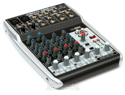 Here’s the latest bit of hardware–a Behringer Q802 mixer.