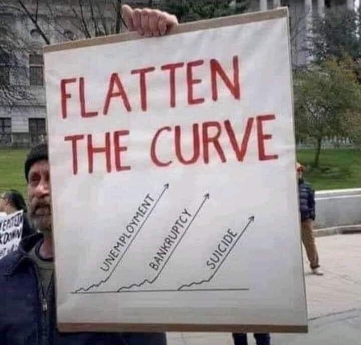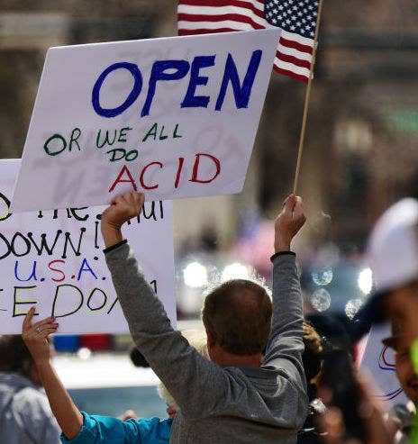 Here’s one protester demanding that we open everything back up as soon as possible for ‘the economy’.