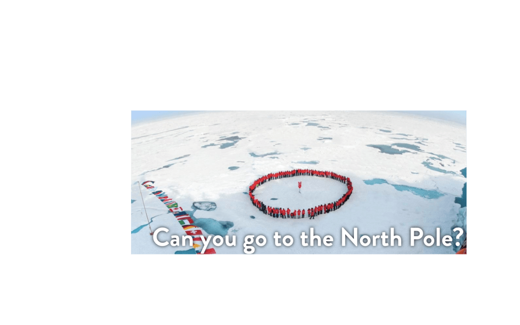 The above is a picture of an exploration ship from Mosaic. They’ve been doing tours of the Arctic in recent years, and when they get near the spot on the ice that’s ostensibly over the geographic location of the North Pole, the boat pulls up and everybody gets off and gets their picture standing on the North Pole.
