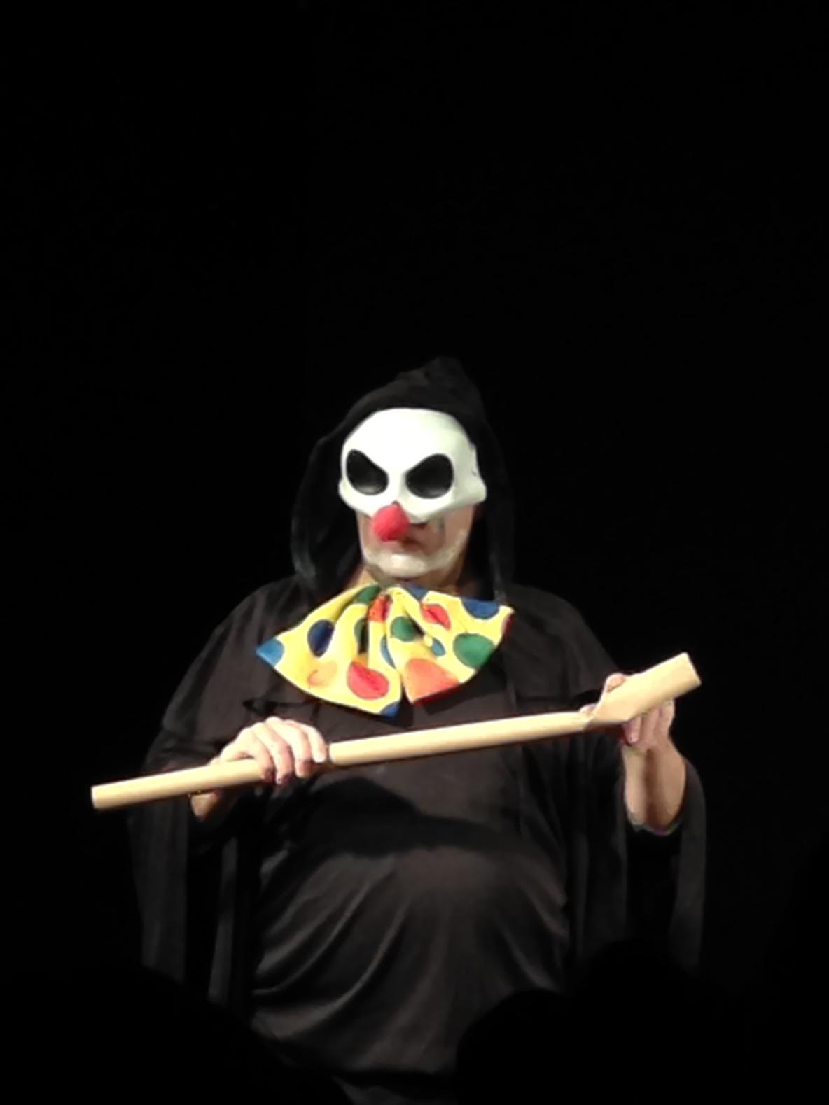 PLANET PHUCKETT!! is a lecture/clown performance on climate change and global warming given by a character named Dr. James Light, an evolutionary biologist who’s been cashiered from his cozy university job because his lectures upset his students. Dr. Light presents his case that humanity is on a short path to extinction. He makes this argument while dressed in clown garb–And as a ‘death-clown’, he tells jokes. He makes balloon animals. He plays with puppets. But Dr. Light also lays out a plan for what a loving people might do under these circumstances.