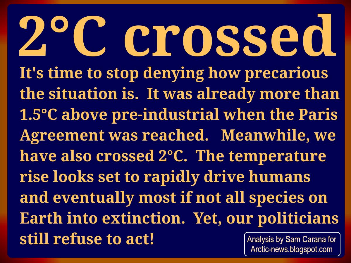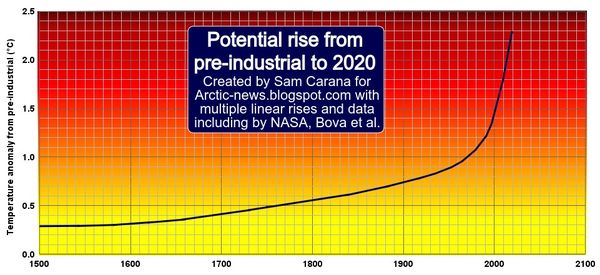 Adding up the different elements thus gives a total rise from pre-industrial that could be as high as 1.29°C + 0.1°C + 0.1°C + 0.3°C + 0.2°C + 0.29°C = 2.28°C. Related Data here: https://arctic-news.blogspot.com/p/pre-industrial.html
