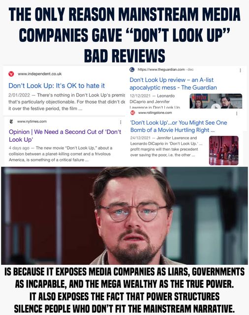 And despite the softening of the doom message in DON’T LOOK UP, many critics panned it.