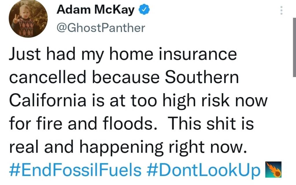 And meanwhile, Adam McKay, the Director of DON’T LOOK UP just found out about the insurance conundrum. He posted on his Twitter account: